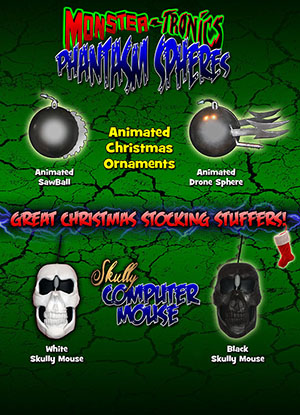 Series of three 20" x 28" tabletop banners for Monster-Tronics, South Lyon, MI, USA. Design by Illusionator. | |||