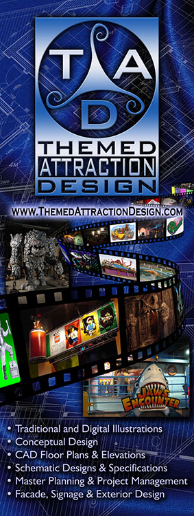Themed Attraction Design, Jacksonville, Florida, USA. Shown above on the right is close-up detail of the banner. Design by Illusionator. |