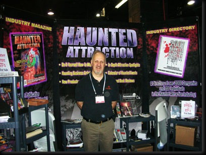 Haunted Attraction Magazine as a backdrop for their booths at the