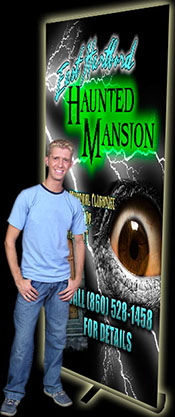 mesh banner for East Hartford Haunted Mansion, East Hartford, Connecticut, USA. Design by Illusionator. |